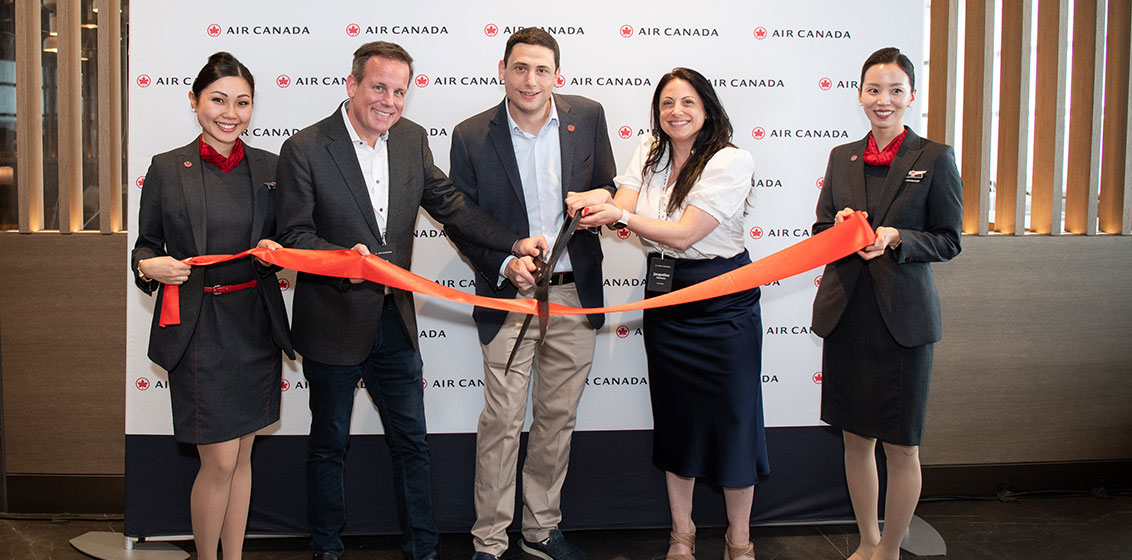 Lead image: Air Canada brand ambassadors flank, from left: Scott O’Leary, Vice President, Loyalty and Product; Mark Nasr, Executive Vice President, Marketing and Digital and Jacqueline Harkness, Managing Director – Product & Services.