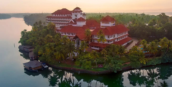 The Leela Ashtamudi, A Raviz Hotel is a tiny hamlet perched on the banks of Ashtamudi Lake, formed by the confluence of the eight lakes, offering a magical backwater experience that flawlessly balances barefoot luxury with rustic charm. Placid, serene waters, surrounded by lush greenery and swaying coconut trees create a tranquil atmosphere perfect for relaxation and rejuvenation. Thoughtfully curated experiences unlock the magic and mystery of the locale and offer an enriching cultural immersion into the destination amidst an awe-inspiring setting.
