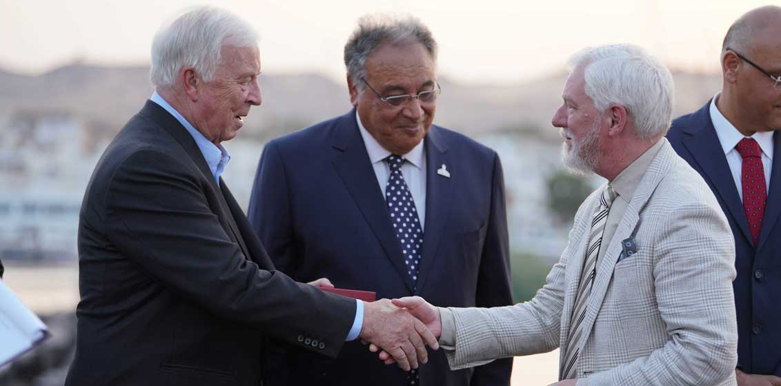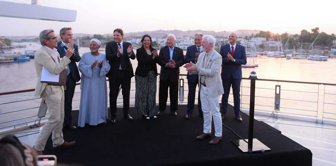 Lead image, from left: Alastair Miller, Award-winning British photographer; Harald Seebacher, Viking SVP Passenger Operations, River; Viking Aton Captain Adb El Fattah; Sherif El Bana, Viking Egyptian Partner; Ghada Shalaby, Vice Minister for Tourism at the Ministry of Tourism and Antiquities, Arab Republic of Egypt; Viking Chairman Torstein Hagen; Mohamed El Bana, Viking Egyptian Partner; Ayman Attya, Board Member, The Arab Contractors, and Richard Riveire.