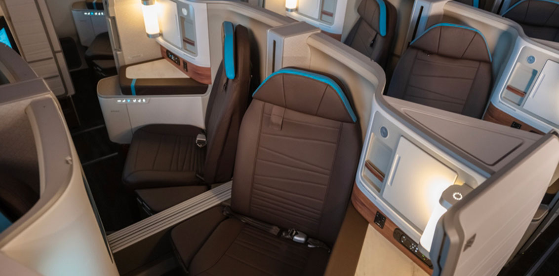 Hawaiian Airlines’ 300-seat aircraft features Hawaiian’s newest premium product, Leihōkū Suites: 34 suites with lie-flat seating, an 18-inch in-flight entertainment screen, personal power outlets, wireless cell phone charging and direct aisle access, set in a 1-2-1 configuration with doors.