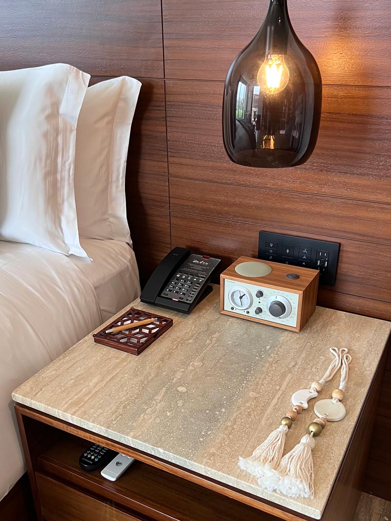 At 70 square metres, this guest room is the largest lead-in room category in Los Cabos. I have a largely uninterrupted view of the Sea of Cortez, which during my stay is pumping as the edge of Hurricane Hilary passes close by. The crashing waves are equally spectacular and a harsh reminder that swimming at any time in the ocean here in this part of Los Cabos is not advised due to strong currents. The massive rocky outcrops that lurk beneath the