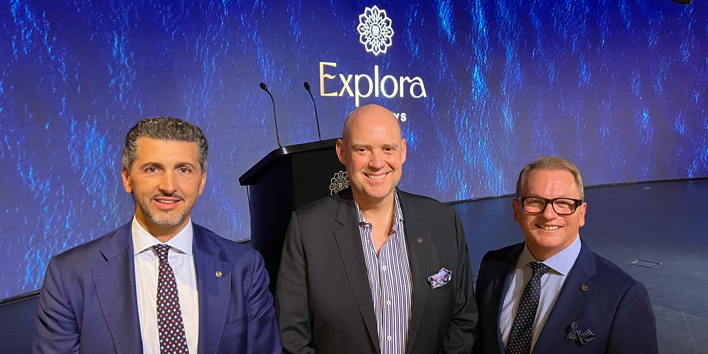 Lead image: Explora Journeys’ executive team captured exclusively by LATTE, from left: Achille Staiano, Chief Commercial Officer; Michael Ungerer, Chief Executive, and Chris Austin, Head of Global Sales.