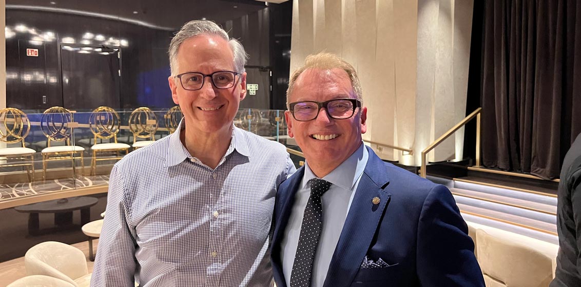 The maritime tradition of cutting a ribbon to break a bottle of champagne on the ship’s bow to officially name the ship and bring good luck took place in the Journey Lounge aboard the ship while moored at the Manhattan Cruise Terminal.