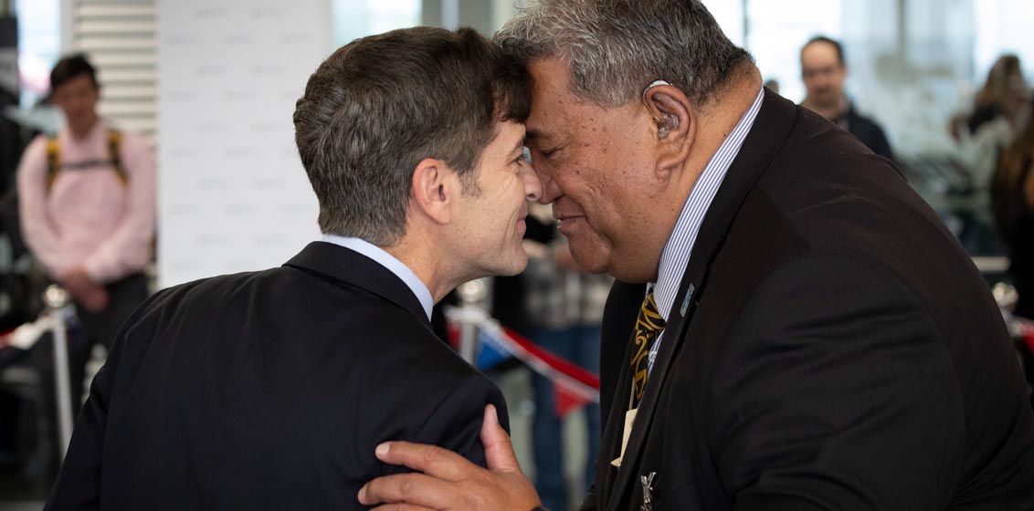 Rob LeBel, Managing Director – International and Specialty Sales was onboard for the maiden service to Auckland on Monday, where he was greeted with a ‘Hongi’ – a traditional Maori greeting in New Zealand used by the Maori people.