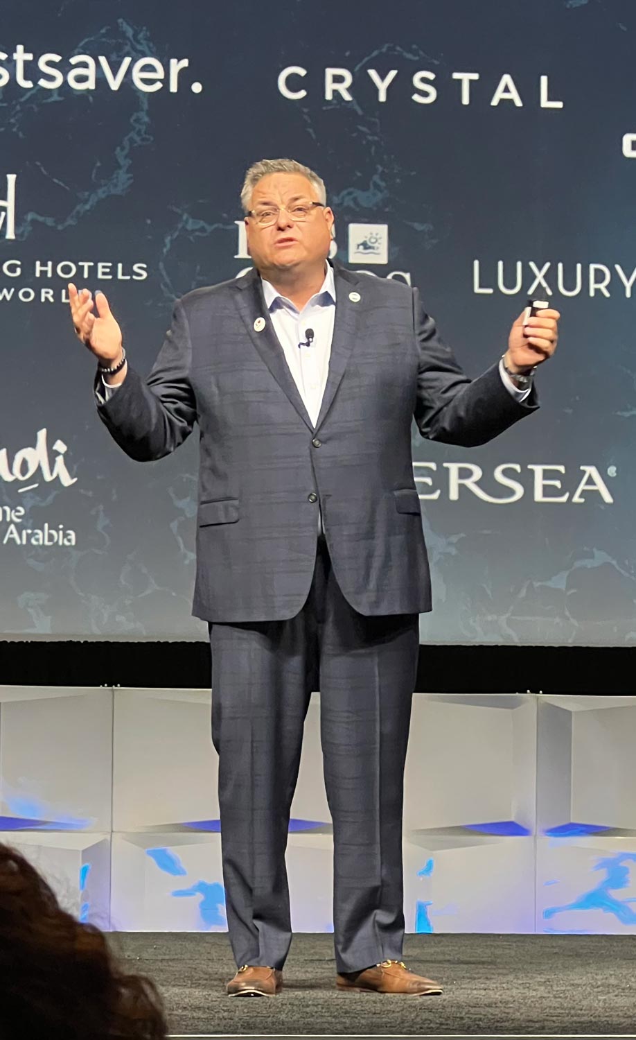 “The future is bright,” Sharpe told travel advisors, partners and media (including LATTE) gathered at The Venetian Resort Las Vegas. “That’s a heck of a head start… you should be very proud of yourself.”