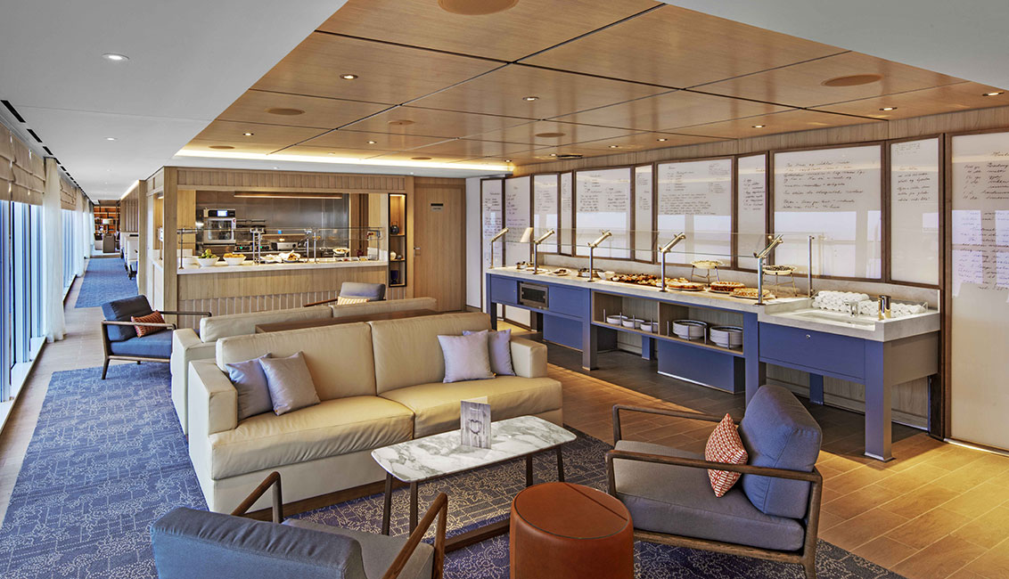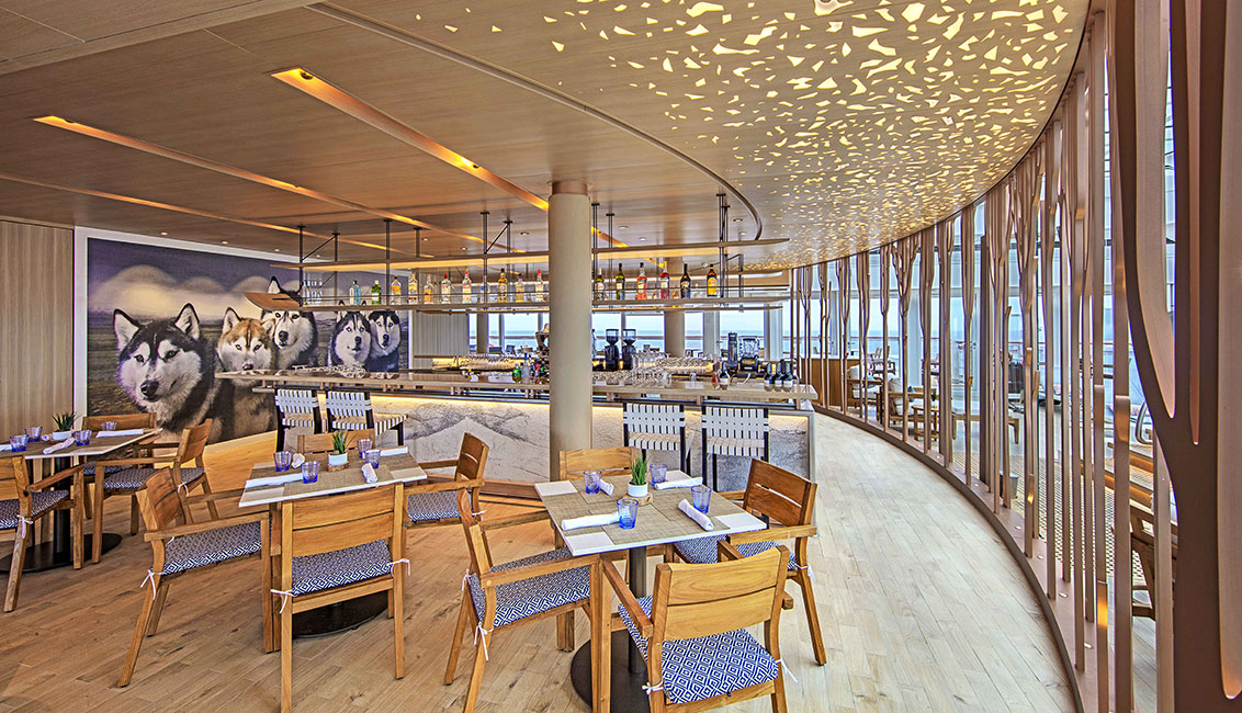The elegant dining venue, The Restaurant, offers the ultimate onboard dining experience. Regional cuisines and always-available classics are served surrounded by sweeping exterior views.