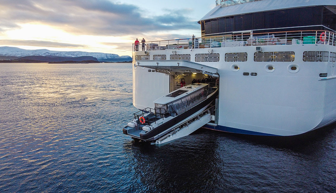When it’s time for an adventure off-ship, simply head to their ground-breaking internal marina, The Hangar. An industry first, The Hangar brings true comfort to expedition cruising. This enclosed, in-ship marina permits the launch of small excursion craft through the ship’s shell doors. The Hangar’s most innovative feature is the slipway that allows guests to embark on Special Operations Boats (SOB) shielded from wind and waves from a stable surface inside the ship, and once on board, to glide into the water. On return, they’ll enter via The Hangar in the Special Operations Boats before disembarking.
