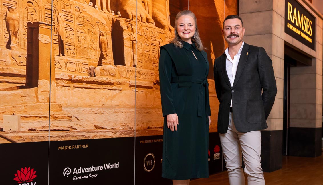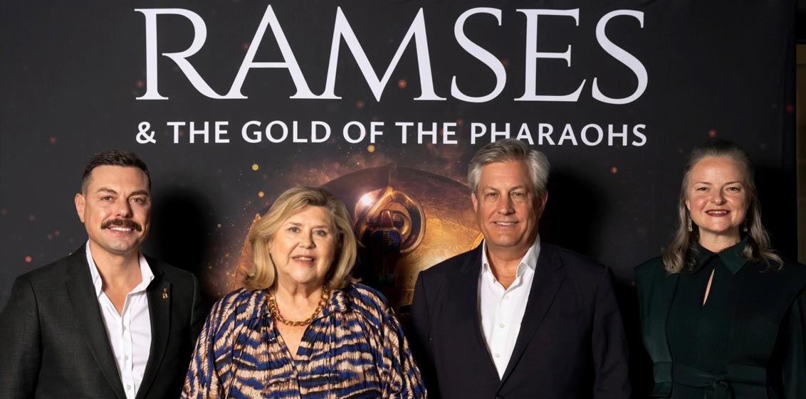 Lead image – Celebrating the opening of Ramses & the Gold of the Pharaohs, from left: Neil Rodgers, Managing Director, Adventure World; Kim McKay, Director and CEO, Australian Museum; Brian Hartzer, President, Australian Museum Trust; and Andrea Morgan, National Accounts Manager, Adventure World.