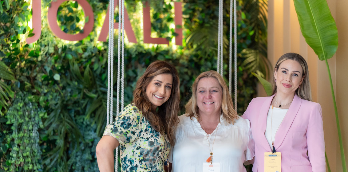 Lead image: JOALI Maldives and JOALI BEING’s Semiha Askin with colleague, Anna Khamicheva (right) and Australian buyer Tonya Sehenk, Tailored Escapes.