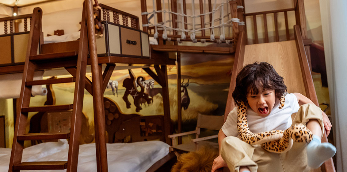 Launching in April 2024, and large enough for parties and special celebrations, these suites offer the ultimate in creativity and fun for both parents and children of all ages. Each comprises a spacious, elegant room with a luxurious king-size bed for parents, a children’s room with an immersive thrills and adventure theme with a slide, and a separate living room.