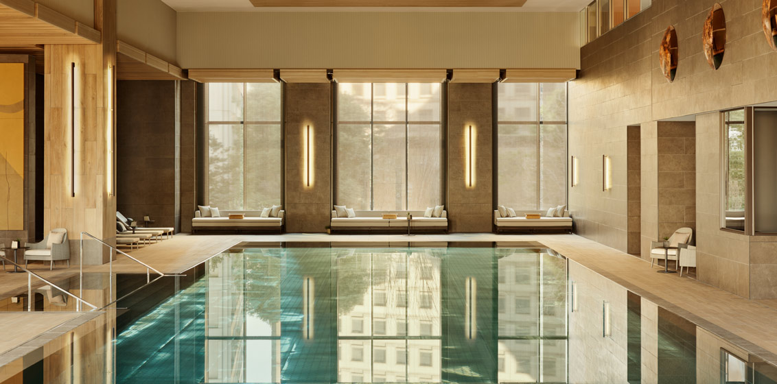 Janu Tokyoʼs commitment to enhancing wellbeing begins in its multi-disciplinary spa and wellness centre which spans four floors. Designed to encourage social wellness, and complement both active and passive pathways, one of Tokyoʼs largest gyms (340 sqm) is accompanied by five movement studios for group exercise including spinning, yoga, golf simulation, and boxing, alongside an extensive hydrotherapy and thermal area with a 25-metre indoor lap pool and heated lounge pool for relaxation.
