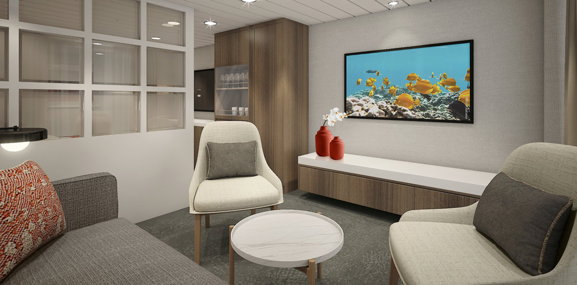 Celebrity Infinity’s Retreat Lounge now boasts a captivating new colour palette, designed to create a warm and intimate atmosphere for guests to unwind and socialise in style, offering a range of amenities including complimentary beverages, gourmet bites, live entertainment and more.The brand-new Sunset Suites feature an extra-large private balcony. Guests will enjoy exclusive amenities of The Retreat, including Butler service, dining at the expanded Luminae at The Retreat, and access to The Retreat Lounge throughout their stay.