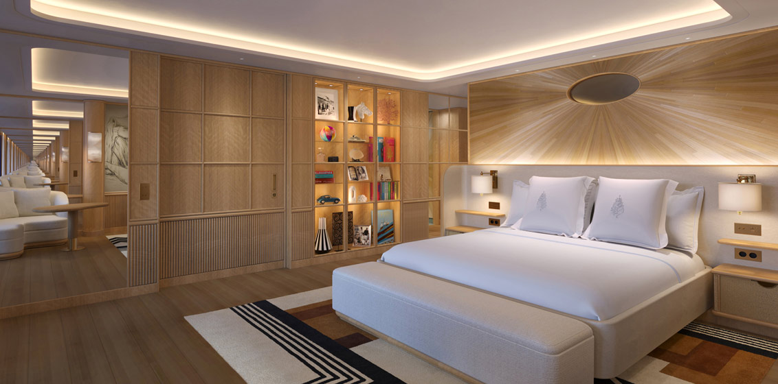 In collaboration with Tillberg Design of Sweden and the Yacht’s Creative Director, Prosper Assouline, the Yacht’s suite design embodies the essence of intuitive luxury, each a sanctuary of tranquility with panoramic views, elegant interiors, thoughtful details and a residential feel that creates the sense of a welcoming home at sea.