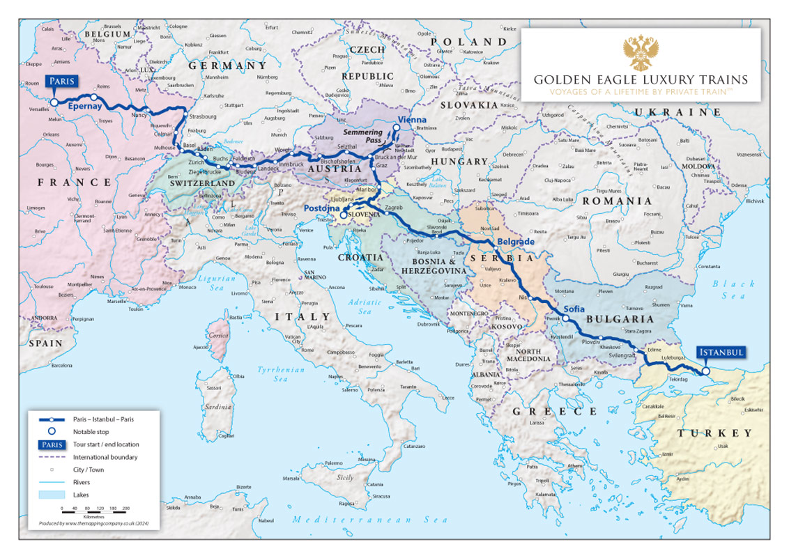 This monumental 8-day journey marks a significant milestone in the company’s trajectory, showcasing its growing success and dedication to expanding its European portfolio aboard the Golden Eagle Danube Express. The journey will pass through France, Switzerland, Austria, Slovenia, Serbia, and Bulgaria before concluding in Turkey (or vice versa).