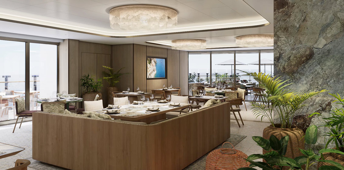 The company’s second newbuild superyacht will feature spacious suites with private oceanview terraces, intimate communal areas encouraging connection, and exciting new venues including the Beach House—a Peruvian and Pan-Latin-inspired eatery—and an expansive pool deck offering some of the most spectacular views at sea.
