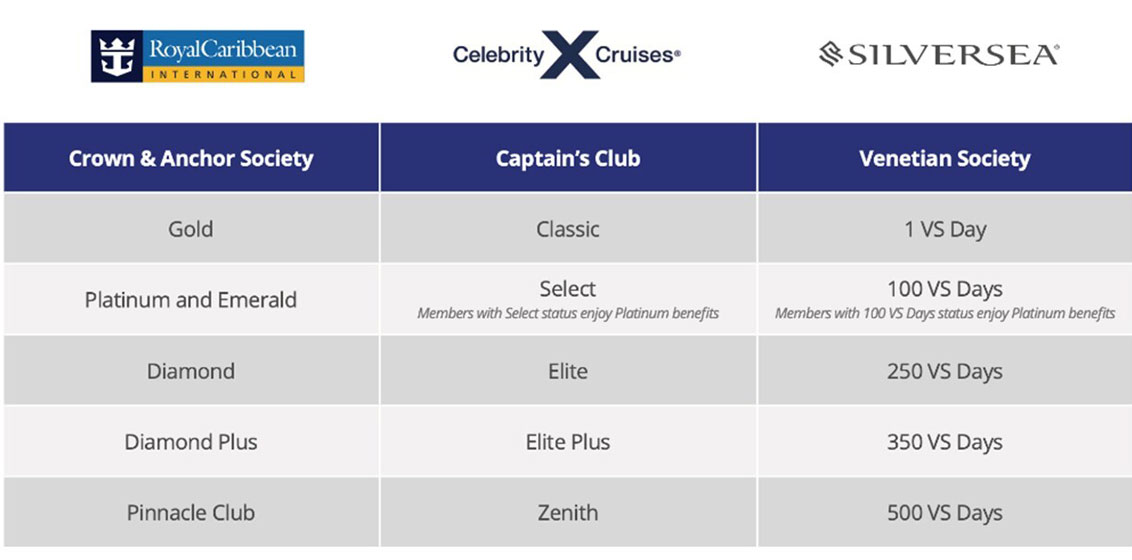 Loyalty members of Royal Caribbean Group three wholly-owned brands – Royal Caribbean International, Celebrity Cruises and Silversea – will attain equivalent tier status on any one of its brands.