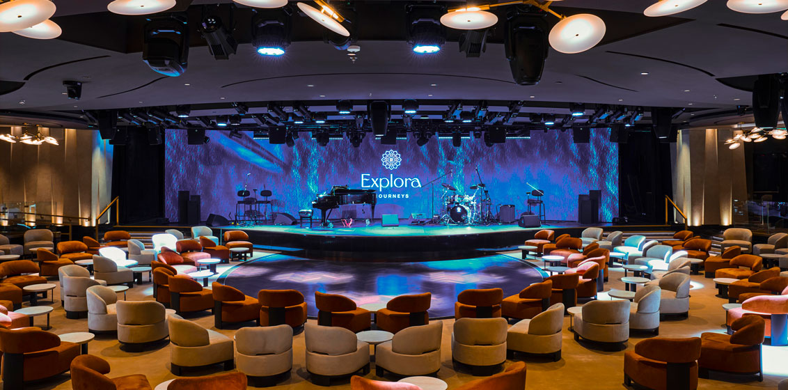 As day transitions to evening, the ship comes alive with live music, offering distinct atmospheres in each venue. From relaxing Euro poolside vibes by DJs to elegant pre-dinner piano music in the Lobby and Explora Lounges, more vibrant musician-vocalist combinations in the Journeys Lounge, and contemporary music with the acoustic loop pedal duo in the Astern Lounge, guests can select their ideal setting for an evening filled with entertainment.
