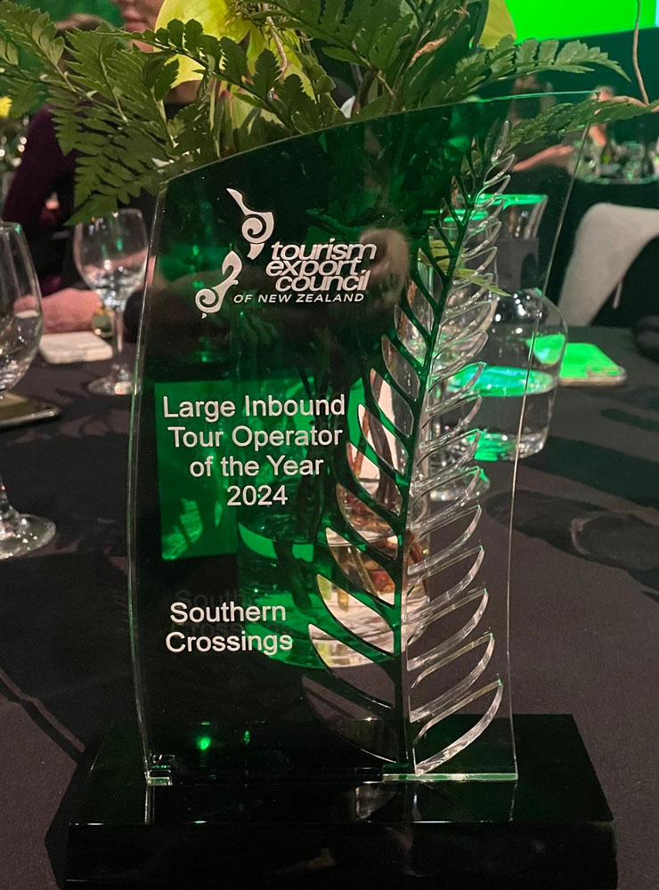 Sarah Farag, Southern Crossings Director, New Zealand said: “We are incredibly humbled and honoured to be recognised with this award that is both judged by the Tourism Export Council of New Zealand and voted on by the people we work with every day.