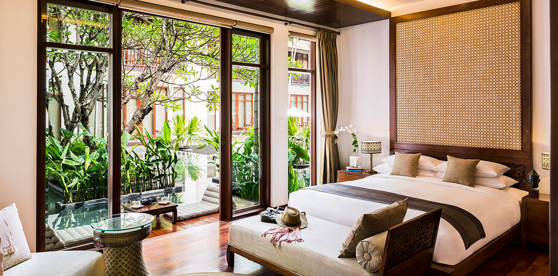 Anantara Angkor Resort offers travellers adventure in a luxurious style in Siem Reap. The resort offers 39 Khmer-style suites arranged around its frangipani courtyard pool, boasting the largest accommodations in Siem Reap. Each suite is crafted with exquisite attention to detail, featuring fine Khmer silks, teakwood furnishings, and modern luxuries. The resort is the closest to the UNESCO World Heritage Site of Angkor Wat, only 15 minutes away by tuk-tuk.