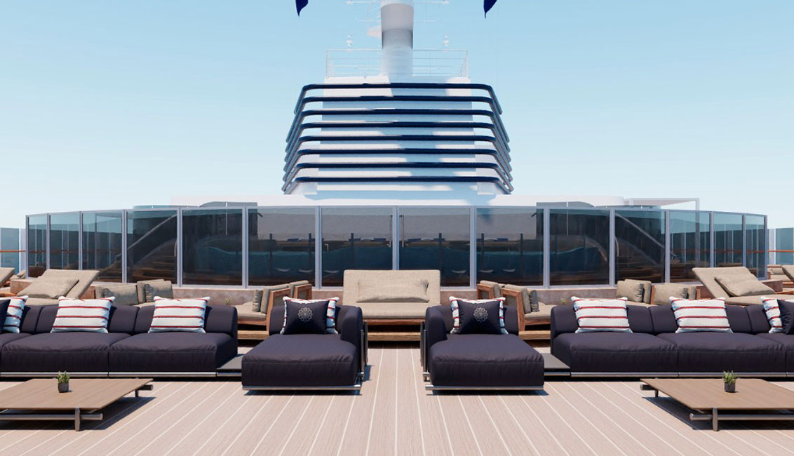 “Headquartered in Geneva, Switzerland – so the Swiss gold thread runs through our brand – with the key pillars: unparalleled space, choices that you would only ever find on the land in ultra-luxury hotels; design that is more of a boutique, cosmopolitan European resort; and very forward focused design to protect our oceans from a sustainability and environmental point of view.