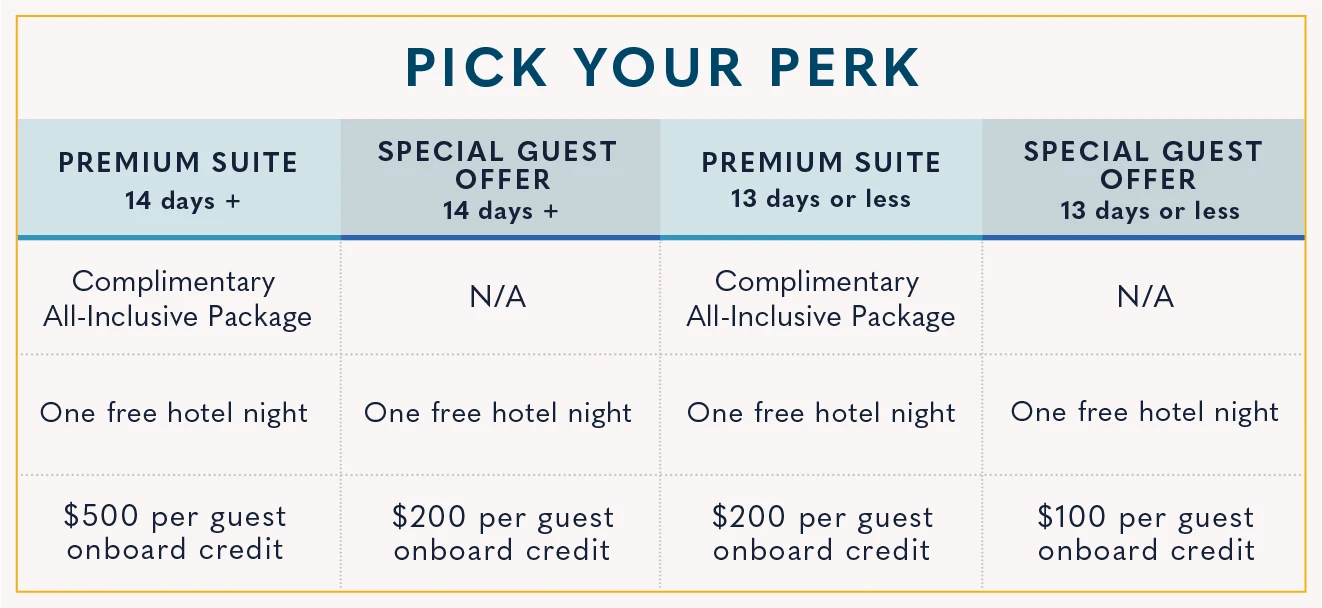Bonus inclusions on sailings through June 2026 when booked by end of March