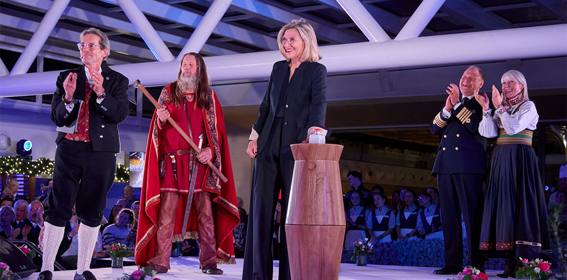 In keeping with the naming tradition, during the ceremony, Ivana was presented with a historic Viking broad axe by Ann Ziff, the esteemed philanthropist, Chairman of the Metropolitan Opera and godmother of the Viking Saturn®. The same axe was previously used in the naming of the Viking Saturn in June 2023.After the axe presentation, Ivana pressed a button that allowed a bottle of Norwegian aquavit to break on the ship’s hull. Guests also enjoyed performances by Sissel Kyrkjebø, one of the world’s leading crossover sopranos and godmother of the Viking Jupiter®, and acclaimed Italian singer Alessandro Safina, who paid tribute to the cultures of both Norway and Italy in song.