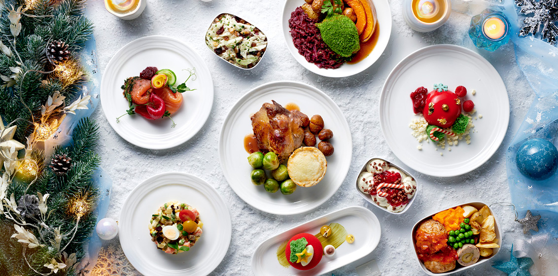 In First, Business, and Premium Economy Class, the holiday classics continue with a huge variety of festive dishes across different routes. Curated dishes like salmon gravadlax with beetroot and orange-marinated salmon, pickled herring with potato and quail egg salad, or smoked salmon with crab mayonnaise and salmon roe will be featured.