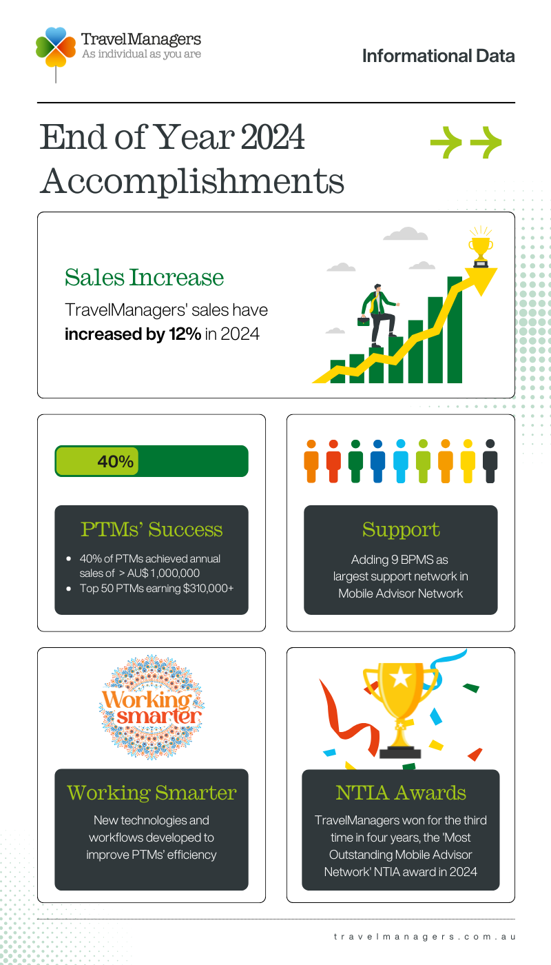 Grant Campbell, Chief Operating Officer at TravelManagers Australia says last year’s results builds on an exceptional performance in 2023, and sets the stage for even greater achievements in 2025 and beyond.