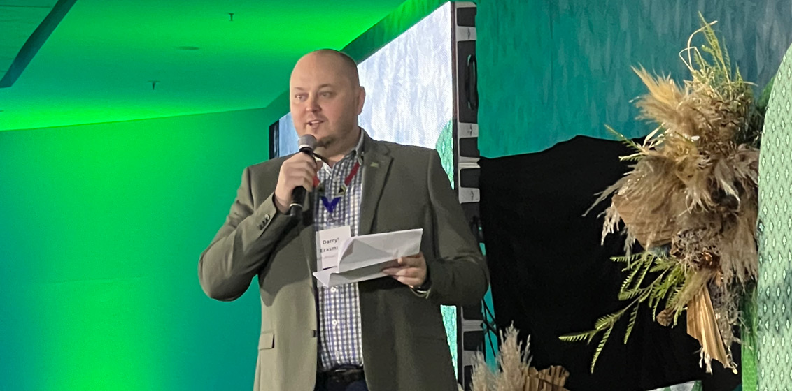 Lead image: Darryl Erasmus, COO, South African Tourism addresses travel advisors and partners in Sun City during the Mega Lekker Escape on Sunday night.