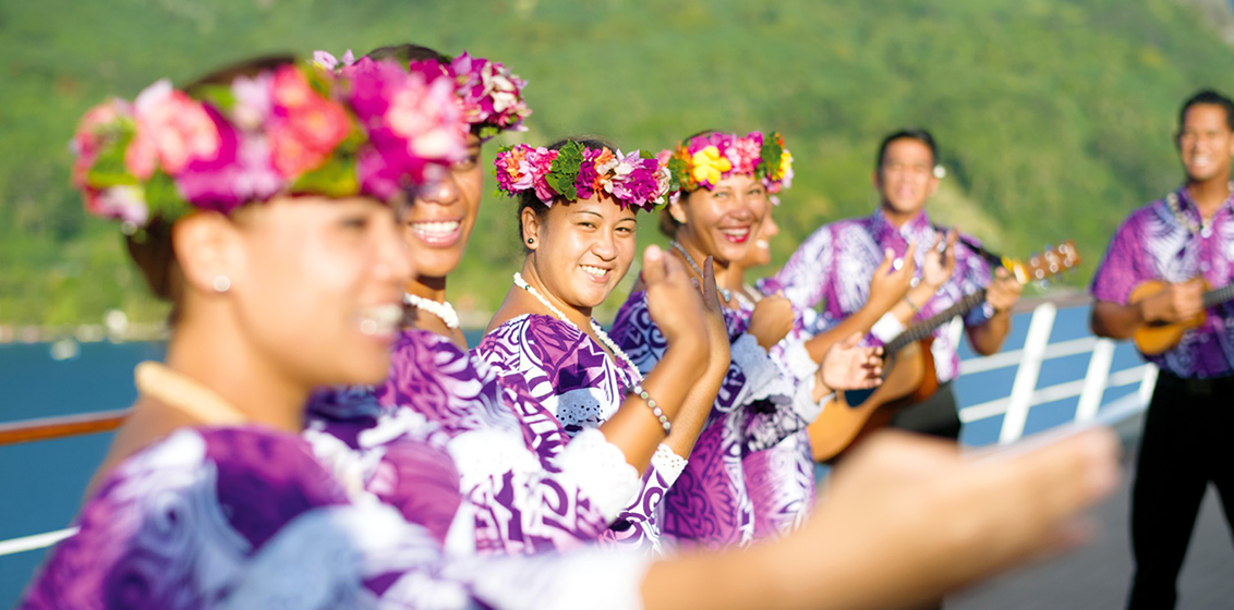 On board, guests are treated to Polynesian hospitality from Les Gauguins & Les Gauguines, a troupe of Polynesian hosts who share the island culture through traditional dance, music, and cultural workshops. Additionally, the Moana Explorer program on select departures offers children aged 6 to 15 an engaging, hands-on introduction to Polynesian culture.