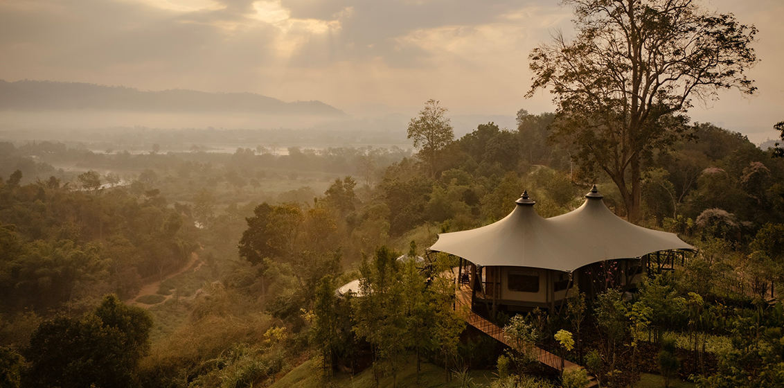 Located just 4 km from the iconic Golden Triangle, the Mekong Explorer Tent sits where the borders of Thailand, Laos, and Myanmar converge. The tent, nestled within a 160-acre bamboo forest, provides sweeping views of the jungle, the mighty Mekong River, and the Golden Triangle, as well as sightings of the 20 rescued elephants of the Golden Triangle Asian Elephant Foundation roaming below.