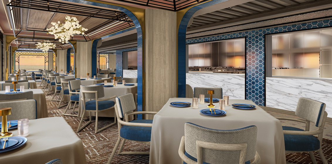Regent Seven Seas Cruises has offered a first look at all seven specialty restaurants that will launch aboard Seven Seas Prestige™, including brand new Mediterranean dining venue, Azure.