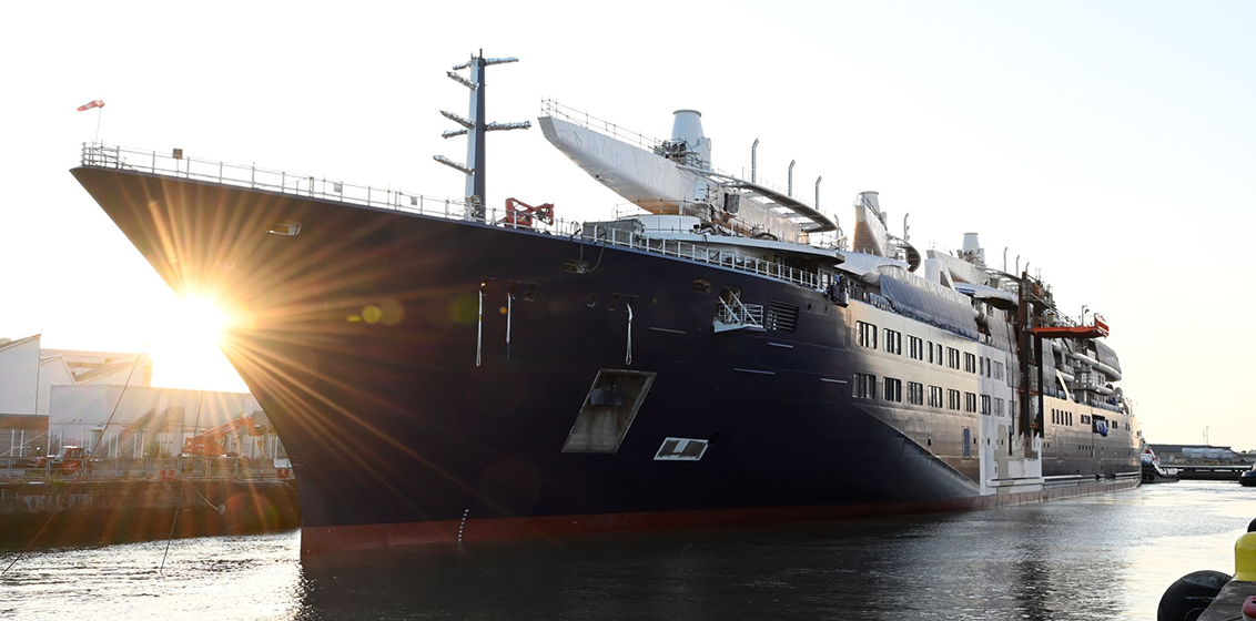 The world’s largest sailing yacht, Orient Express Corinthian, has been floated out in Saint-Nazaire, France – an important moment for the Accor-owned project.