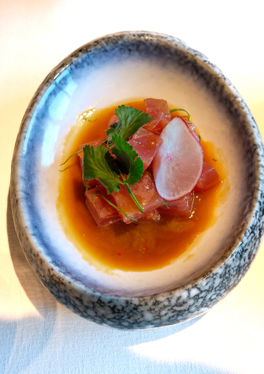 - Ceviche Nikkei – Marinated tuna delicately dressed in leche de tigre, accented with cilantro, sesame oil, and a hint of red chili for a refined take on the Peruvian classic.