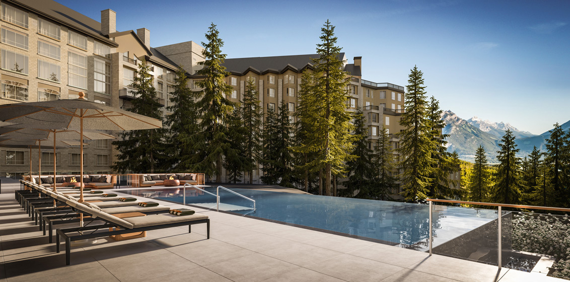 experience, including: a breathtaking mountainside infinity pool with sweeping views of the Bow Valley, vitality pools, ice immersion bathing, panoramic saunas, meditation rooms, movement studios, and an expedition centre designed to offer guests insight into the adventures and activities available in the iconic Canadian Rockies.