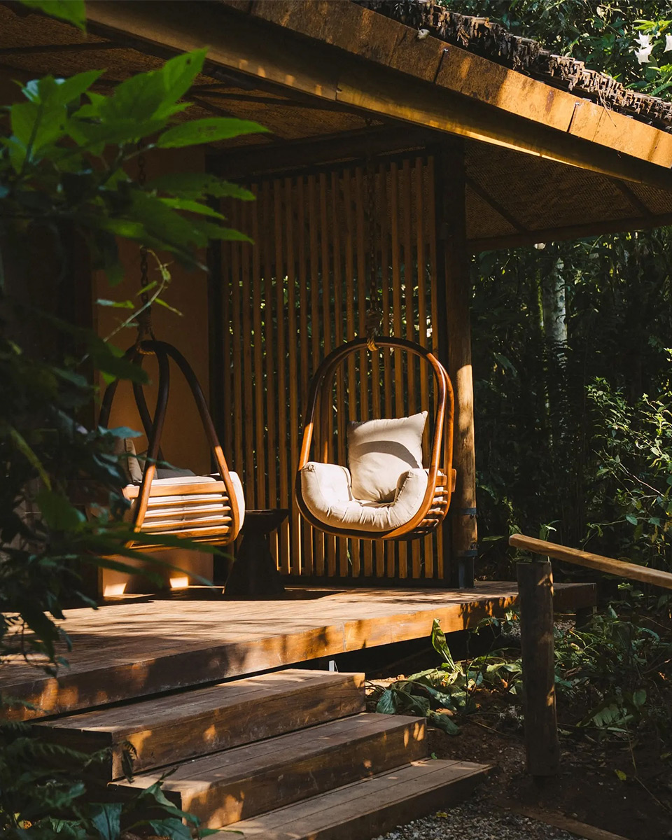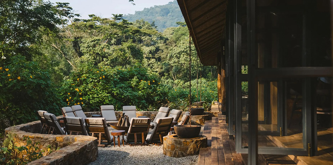 Guests can now expect floor-to-ceiling windows and expansive decks with swing chairs handmade in Uganda that immerse them in the rainforest. The design took inspiration from Ugandan heritage, incorporating vernacular building techniques and locally sourced materials like banana leaves and papyrus reeds.