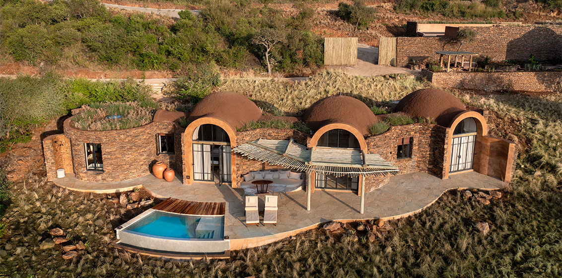 Each of the 14 suites (including a family suite) features private plunge pools, expansive views, and layered interiors that reflect Kenya’s tactile richness, from wild dog–inspired cladding to Samburu beadwork and bronze details.