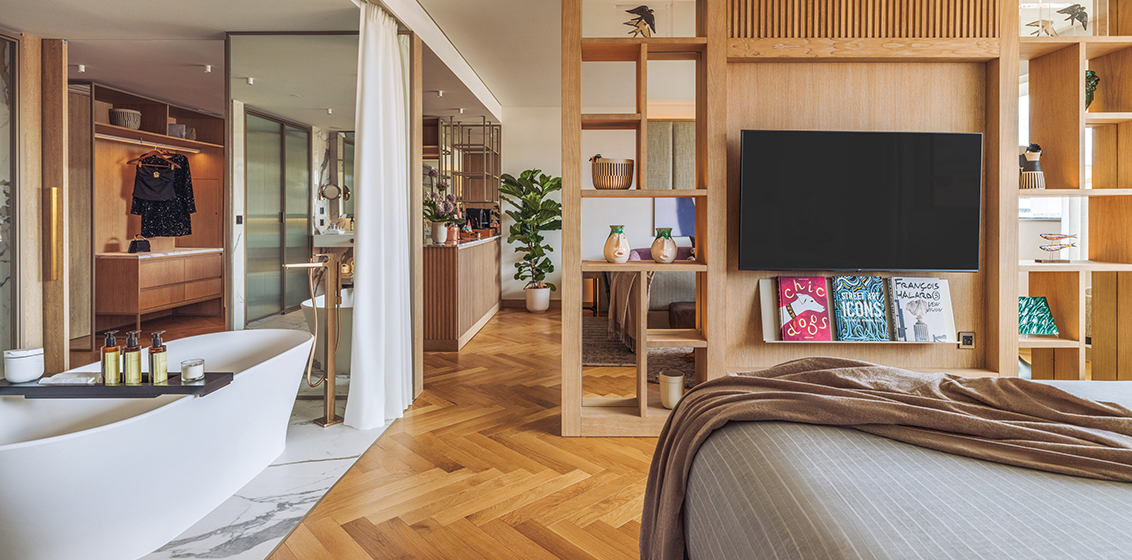 On the ground floor, fismuler—by Spain’s acclaimed Familia La Ancha—serves elevated, seasonal cuisine in a relaxed, Nordic-inspired setting. Atop the hotel, attiko by Sunset Hospitality offers “a pan-Asian fine dining playground.” Here, guests and locals can sip on signature cocktails and enjoy the atmosphere and castle views.