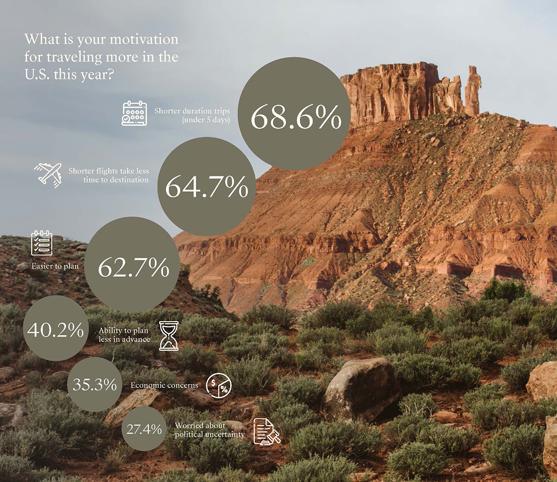 Not all of the travelers staying stateside reported it was due to financial reasons, however. Some noted that it allows for more time in the destination since it’s less time in transit; others are still in a “defensive mindset” following the pandemic; and others yet are traveling domestically “because of a loose political motivation.” Given the various reasons for domestic travel, Kensington projected this trend to continue.