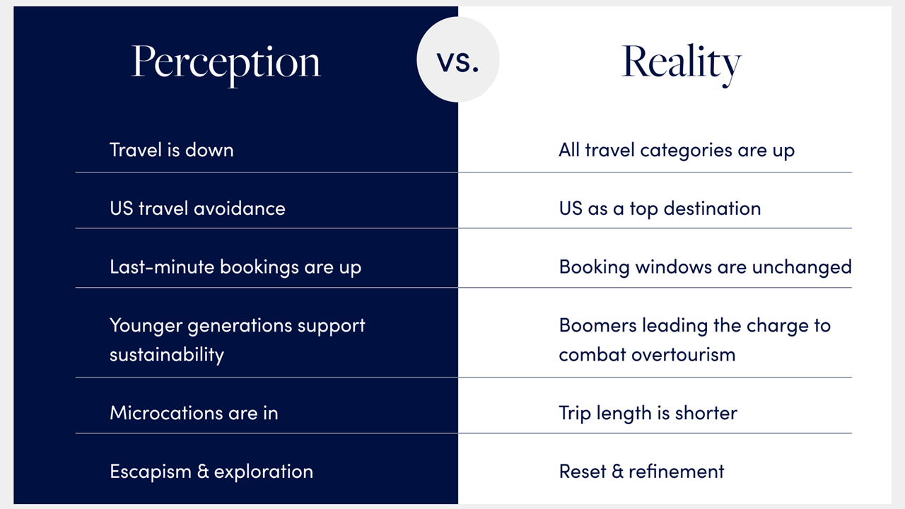Despite the perception that “travel is down,” Virtuoso is reporting that all travel categories are up when compared to 2024 numbers. Said Misty Belles, Vice President, Global Public Relations for Virtuoso: “Luxury travel just behaves differently.”