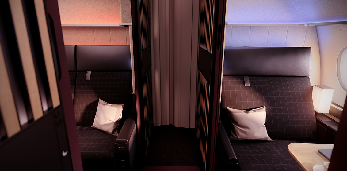 The product comprises adjoining First Class suites, including the aisle, to be combined into a single extensive and exclusively secluded loft to provide additional room for couples traveling together, families or business travellers. The combined private area, which also features over 1.8-metre-high walls, can be used for any of various functions. And be it as a workplace, a restaurant or a bedroom, this extensive space enables its occupants to spend their flight free and undisturbed within their own exclusive zone.