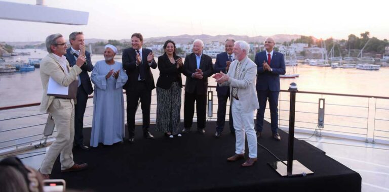 Viking has named its newest river ship, Viking Aton, with a special celebration in Aswan, Egypt. The ship’s ceremonial godfather, Richard Riveire, designer of Viking’s award-winning river, ocean and expedition vessels and founding Principal of internationally acclaimed interior design firm Rottet Studio, offered a blessing of good fortune and safe sailing for the ship—an evolution of the naval tradition dating back to thousands of years.