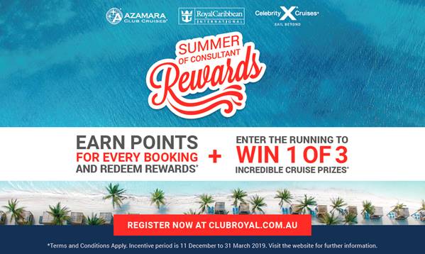 RCL Cruises (Royal Caribbean, Celebrity Cruises and Azamara Club Cruises) has launched its biggest consultant incentive offer yet for the duration of the 2018/19 Wave season, from December to March.