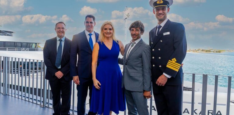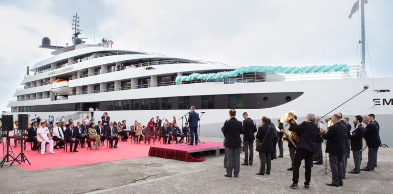 Emerald Cruises’ first ocean luxury yacht, Emerald Azzurra, was named in an intimate ceremony in Venice, Italy on 28 May 2022. In attendance were Glen Moroney, Founder and Chairman of Scenic Group (of which the Emerald Cruises brand is included), his wife Karen Moroney, Director of Project Design; along with embarking guests, key senior Emerald Cruises staff and local dignitaries.