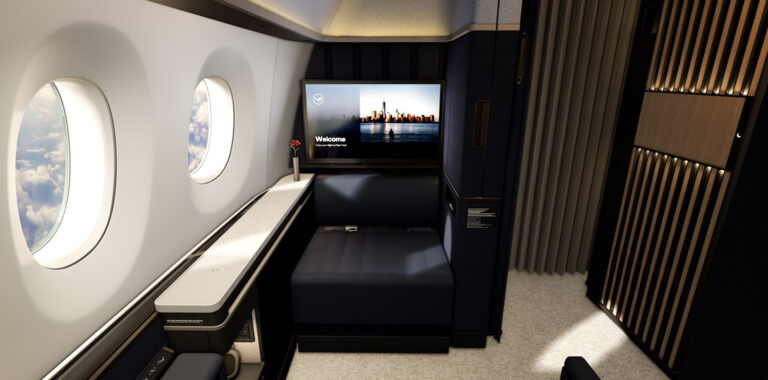 Lufthansa is expanding its premium First Class offering with the “Suite Plus,” a separate double cabin with ceiling-high walls and an entirely closable door, large table and two wide seats that can be combined into a comfortable double bed if required.