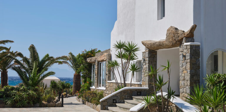 Myconian Sunrise Relais & Châteaux is showing off a redesign inspired by Mykonos in the 1970s. In addition, Sunrise has been admitted into Relais & Châteaux for its “commitment to authenticity, place, and exceptional hospitality.”