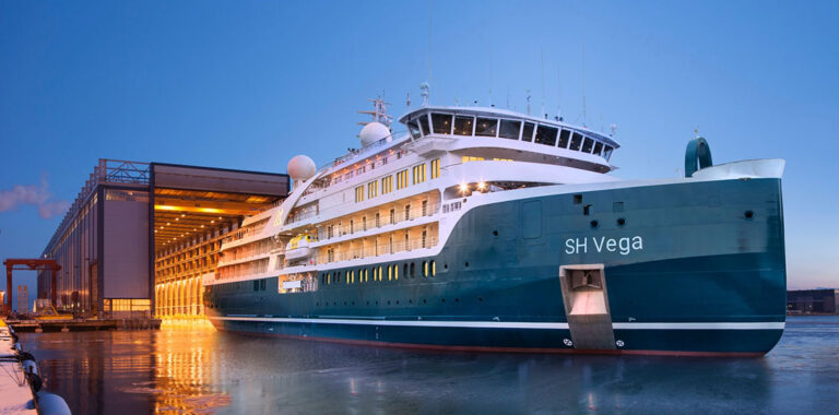 Swan Hellenic’s second ship, SH Vega, was floated out of dry dock at the Helsinki Shipyard late last week. SH Vega is the “twin-ship” of SH Minerva, launched at the end of 2021 and now exploring Antarctica.
