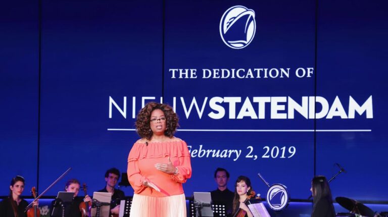 Oprah Winfrey officially became a Godmother last weekend when she named Holland America Line’s Nieuw Statendam during a dedication ceremony at Port Everglades in Fort Lauderdale, Florida.