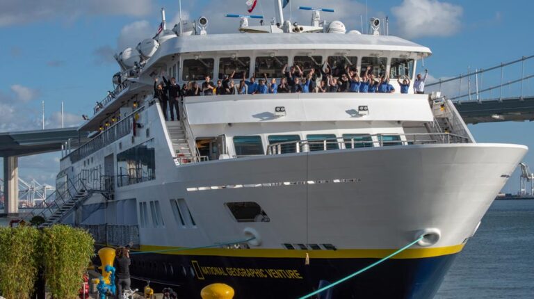 Lindblad Expeditions-National Geographic officially launched the newest addition to their fleet, National Geographic Venture, at a dockside christening ceremony in San Francisco Bay on Friday, 30 November, 2018. The occasion marked a major milestone for the line, as only the second new build in the company’s history. Following the ceremony, the ship embarked on a two-night VIP mini expedition that included travel agency partners, affinity/charter partners, media and other special guests.