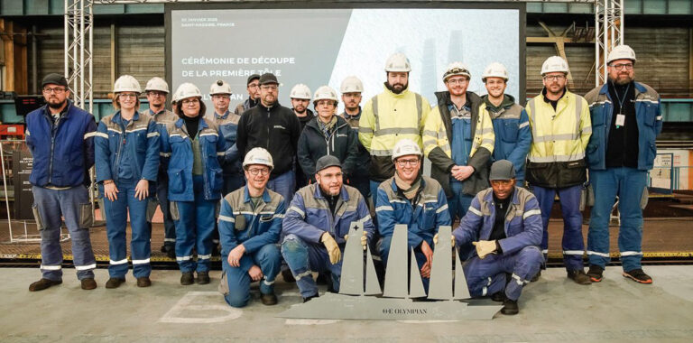 A double occasion was celebrated at the Chantiers de l’Atlantique shipyard in Saint Nazaire, France this week with the keel laying of Orient Express’ first luxury yacht Corinthian, and the first steel cutting of its second yacht Olympian.
